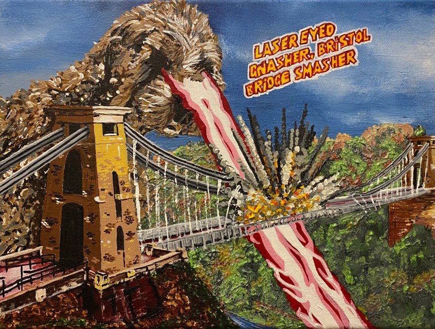 My client wanted their Dogs painting set in Bristol with inclusion of the Clifton suspension bridge.
