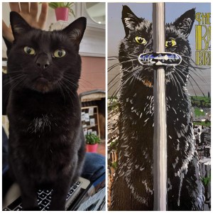 Bespoke B-movie pet portrait of Bates the cat.