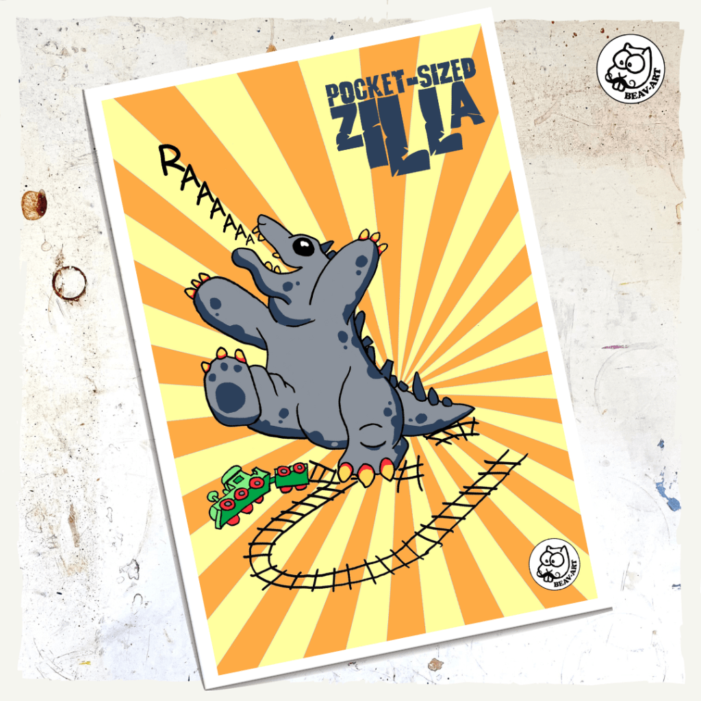 Pocket-Sized Zilla is a mini monster Illustration, which is a combination of hand drawn and digital work. Based on baby versions of classic movie monsters.